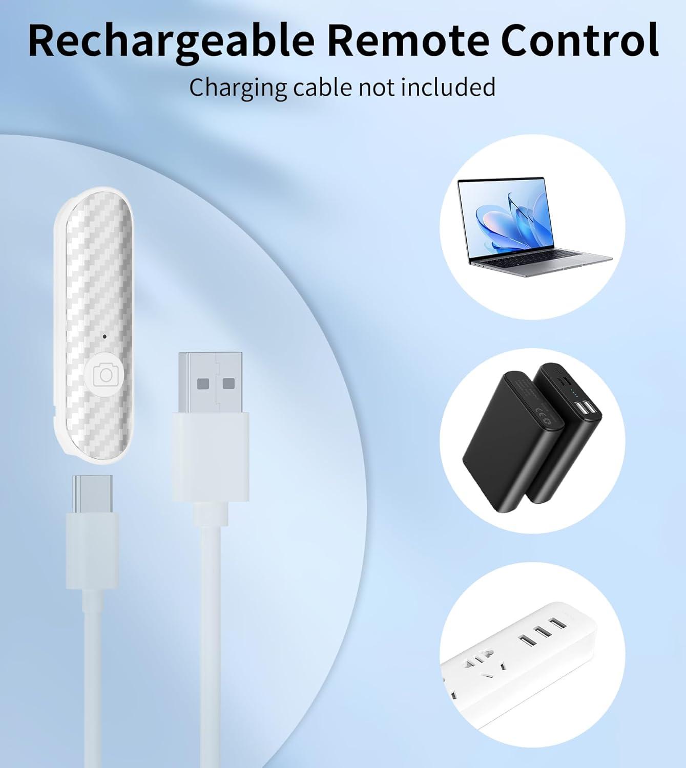 Phone Tripod Chargeable Remote,Wireless Remote,Shutter Compatible with iOS 5.0+ & Android 7.0+ Smartphones(White)(Black)
