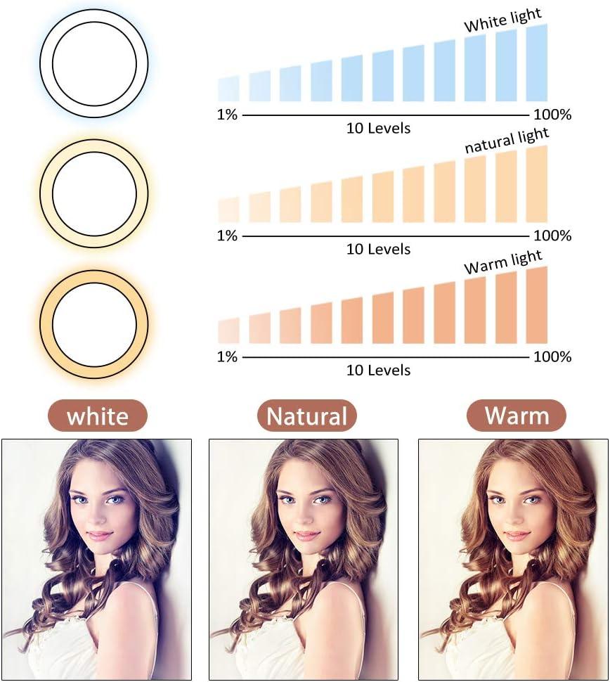 【Ample and Soft Lighting Performance】This 20W ring light features 300 LED beads, providing sufficient brightness in various environments to ensure outstanding shooting results. Utilizing side-emitting technology, the evenly distributed LED beads significantly reduce shadows and hot spots, creating a soft light that enhances clarity and color richness in photography.