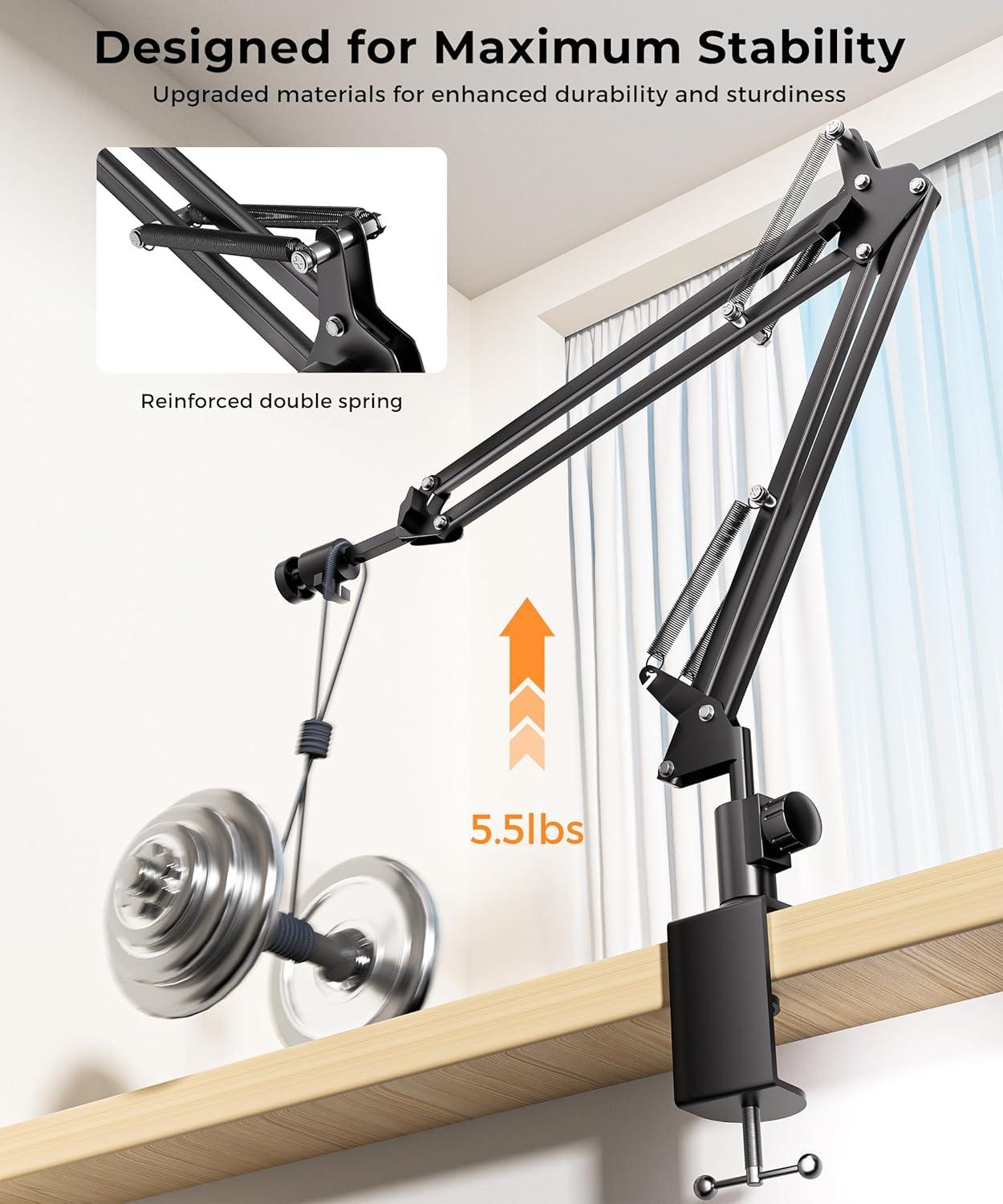 【Sturdy Multi-Device Support】Securely holds DSLRs, smartphones, webcams, and ring lights with its heavy-duty articulating arm. No more shaky footage during unboxing videos or cooking tutorials