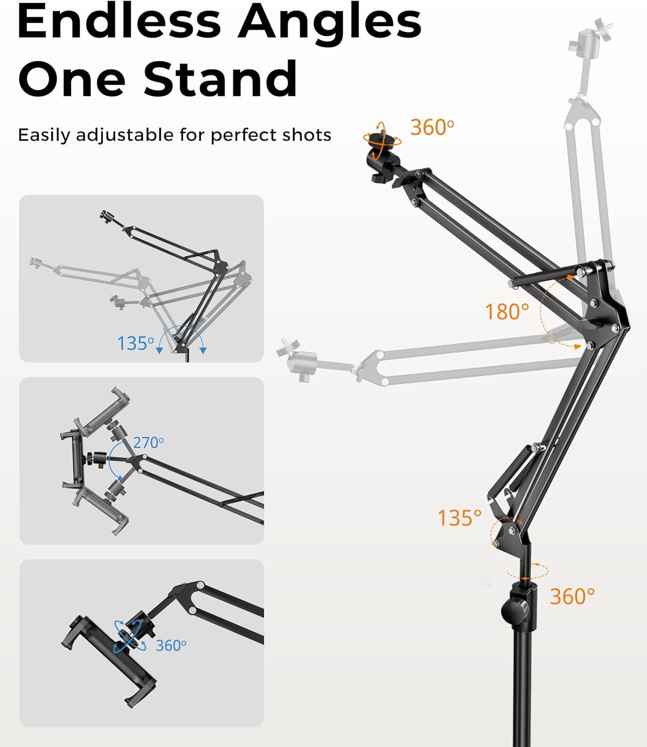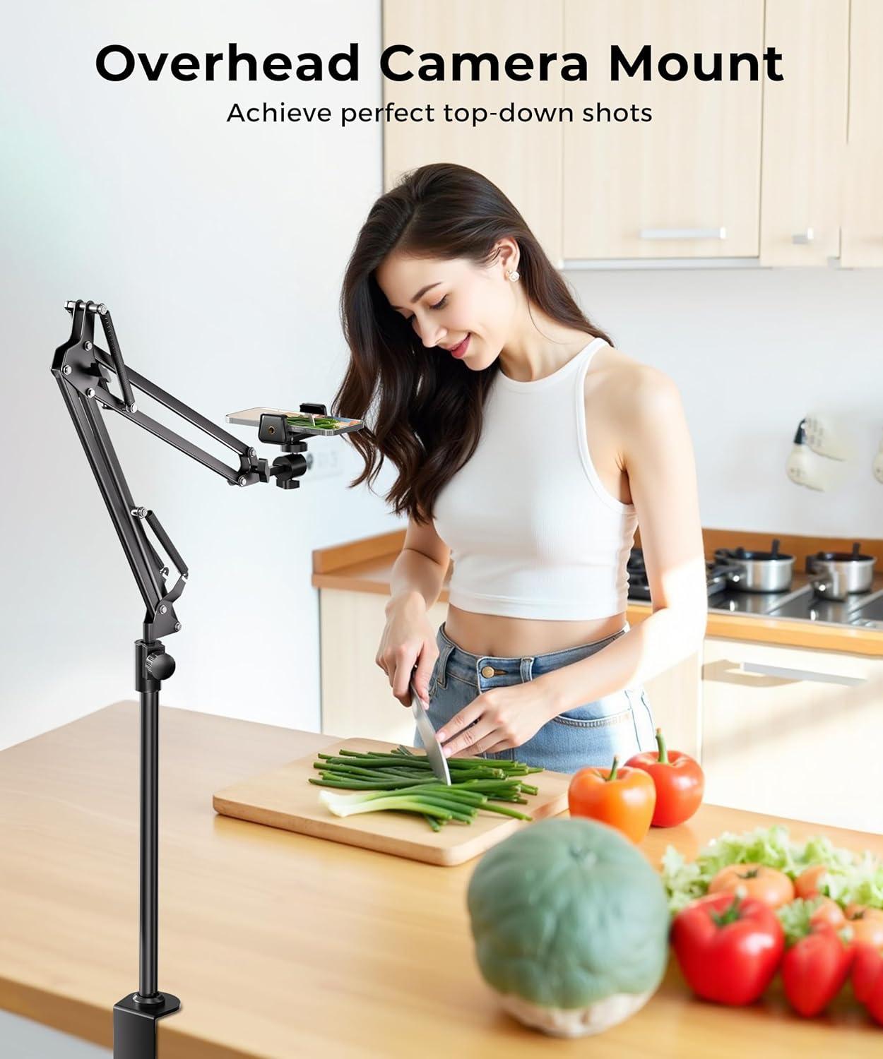 【Effortless 360° Positioning】The 1/4″ ball head and camera boom arm allow overhead shots and side angles in seconds. Ideal for product photography and Zoom meetings